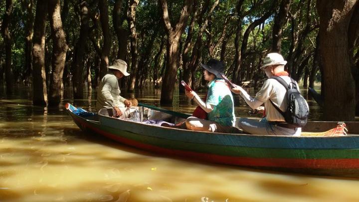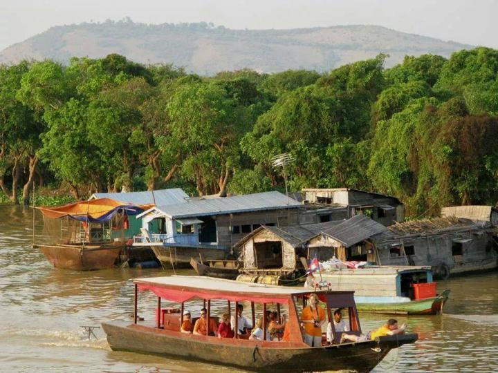 Chong Kneah floating village - after breakfast at your hotel, transfer to the Phnom Krom pier for boat on Tonle Sap Lake to visit floating village of Chong Kneah at the edge of Tonle Sap Lake. Cambodia’s Great Lake, the Boueng Tonle Sap (Tonle Sap Lake) is the most prominent feature on the map of Cambodia – a huge dumbbell-shaped body of water stretching across the northwest section of the country. In the wet season, the Tonle Sap Lake is one of the largest freshwater lakes in Asia, swelling to an expansive 12,000km2. During the dry, half of the year the lake shrinks to as 3000 km2, draining into the Tonle Sap River, which meanders southeast eventually merging with the Mekong River at the “Chaktomuk” confluence of river opposite Phnom Penh.