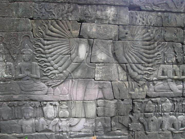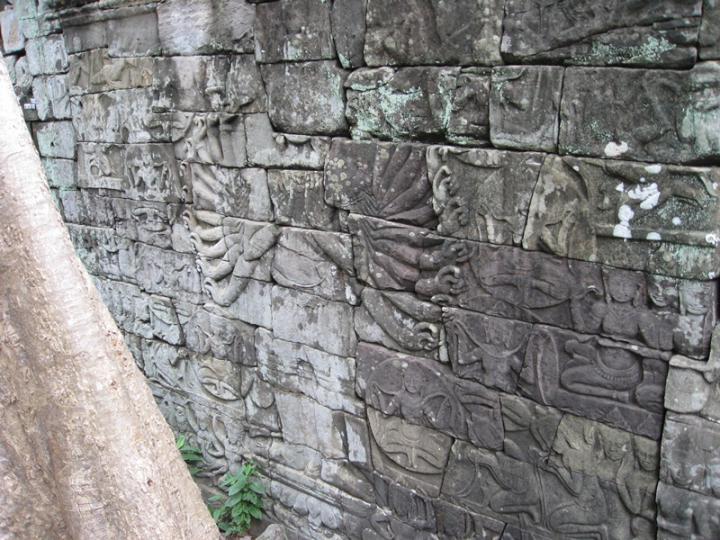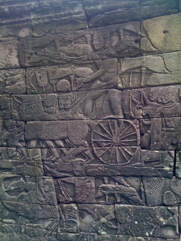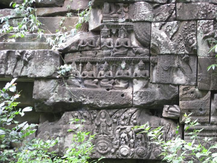 The complex resembles Angkor Thom and other structures attributed to Jayavarman VII. It is one of two sites outside Angkor with the enigmatic face-towers. Besides that, its outer gallery is carved with bas-reliefs depicting military engagements and daily life scenes very similar to the well-known ones in Bayon.