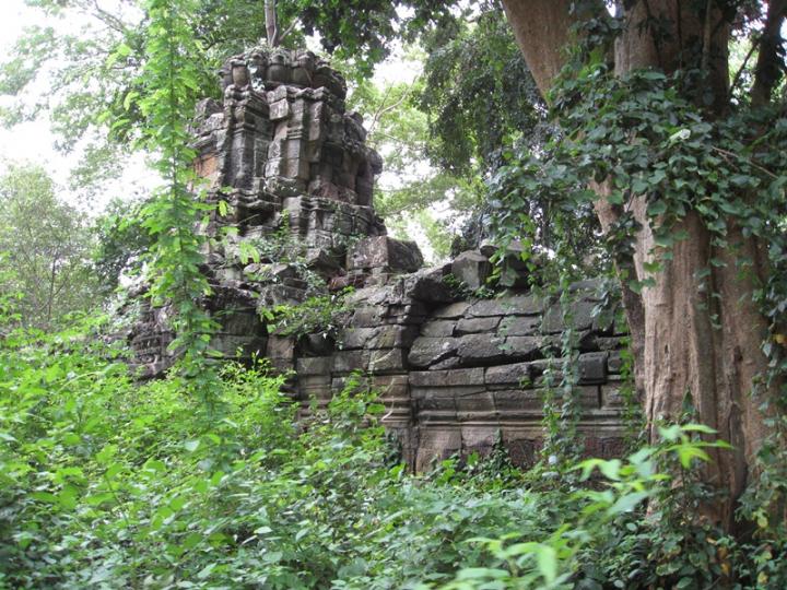 Besides the main temple and the mebon there are other eight secondary temples. Four stelae detailing Jayavarman VII's genealogy were placed (though they remain unfinished) at each of the four corners of the third enclosure wall, mirroring the stelae that occupied the four corner-shrines (Prasat Chrung) of the king's capital at Angkor Thom.